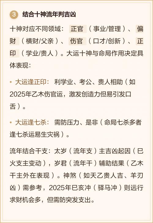 辛金见乙木为偏财,见巳火为正官、这是“财官两旺”的年份、偏财代表意外之喜、投资收益,正官代表自律与名望、2025年辛金人适合在金融、管理领域大展拳脚、社交活动频繁,能结识有权势之人、感情生活精彩,异性助力大、需注意财大招风,为人应保持低调。