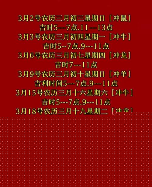 希望这些具体的日期与流程,能为您的迁居提供实质性的指导、记好这些关键点,在三月的春风里,祝您的新家红红火火,家安人兴。