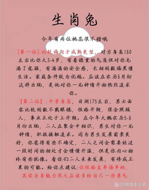对于已婚的卯兔而言,“卯午相破”的影响更多体现在家庭生活的和谐度与稳定性上、这种“破”,可能是“破财”,因财务问题引发夫妻争执;也可能是家庭成员之间的关系破裂,例如婆媳矛盾、亲子隔阂等,这些外部矛盾最终会投射到你们的夫妻关系上。