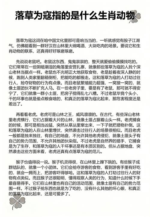 属猴者的“寇”,并非出于虎的被动反抗,更多是源于一种主动的、对权威的不屑、他们觉得规则是用来打破的,秩序是用来重塑的、在他们眼中,僵化的体制与思想就像一个巨大的牢笼,而他们就是那只总想着用金箍棒捅破天的猴子、在现代社会,这种特质表现为那些不走寻常路、敢于挑战行业巨头、创立新模式的创业者或革新者、他们看似在“破坏”旧有的一切,实际上是在用自己的方式建立新的“花果山”、当探讨落草为寇指什么生肖时,属猴者以其颠覆性的智慧与勇气,占据了重要一席。