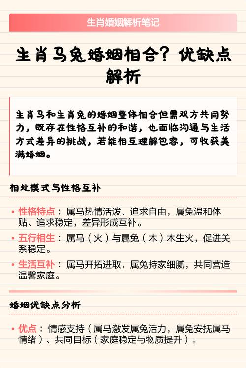 举一实例、若夫妻二人欲开一商铺,午马之人凭其敏锐直觉与交际手腕,能迅速找到铺位,谈妥货源,打开市场、而卯兔之人则能冷静分析地段人流、成本利润、现金流转,将每一笔开销记录在册,规避潜在的经营风险、一人主外,一人主内,钱财自然滚滚而来、倘若卯兔因恐惧风险而阻止午马的行动,或午马不耐烦卯兔的繁琐计算而独断专行,则此事多半中途夭折,甚至引发亏损。