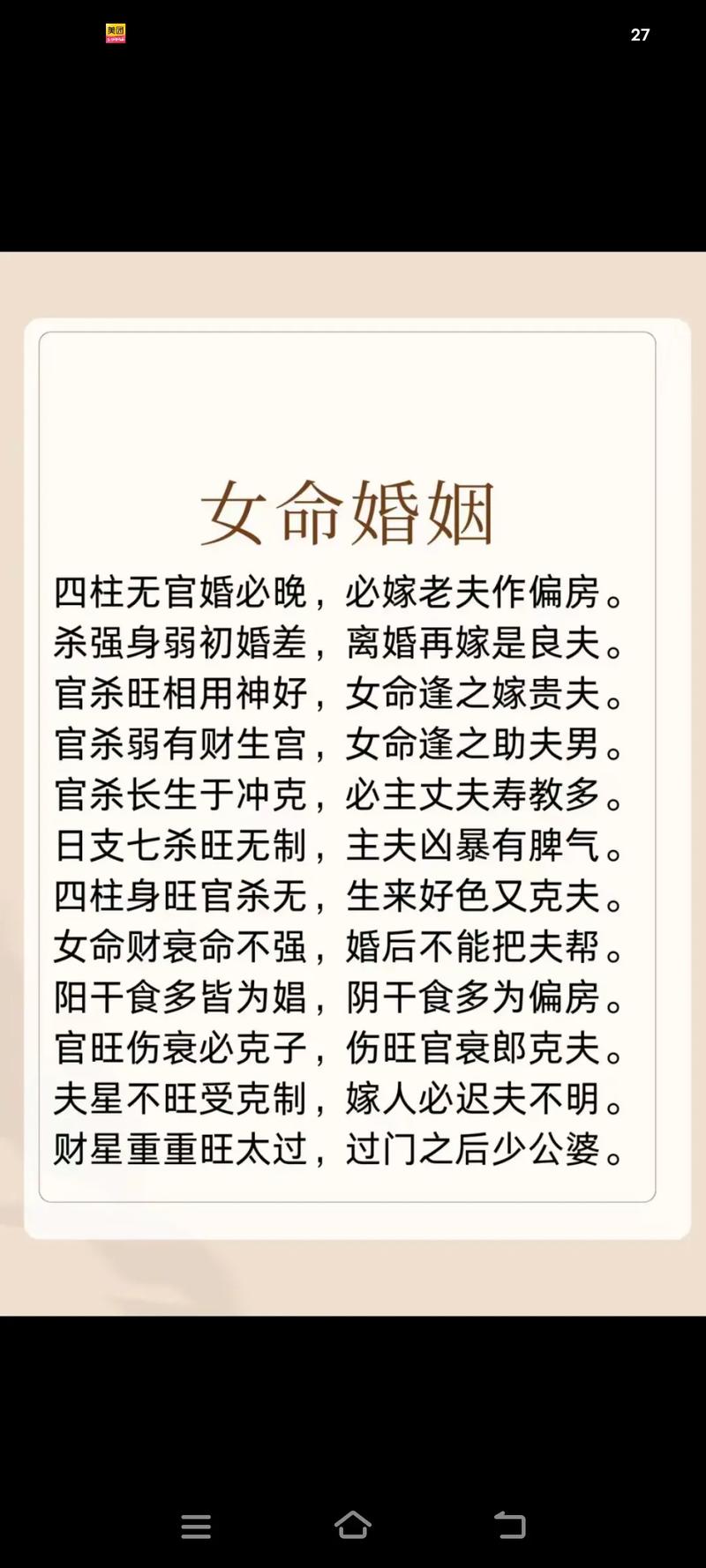官星为正,七杀为偏、若八字中官杀并见,谓之“官杀混杂”、对于女命而言,这代表异性缘分过于驳杂,早年容易在多个男性之间徘徊,或者遇到不负责任、性格暴躁的初婚对象。