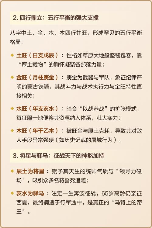 在2026年这个时间节点回望,这位伟人的八字依然闪烁着五行生克的冷峻光芒、每一个干支的跳动,都对应着一次草原部落的集结,一次穿越沙漠的远征、命理虽是定数,但成吉思汗用他的一生证明,如何在定数的起伏中,利用那一丝生机,逆天改命,建立不朽的功勋。