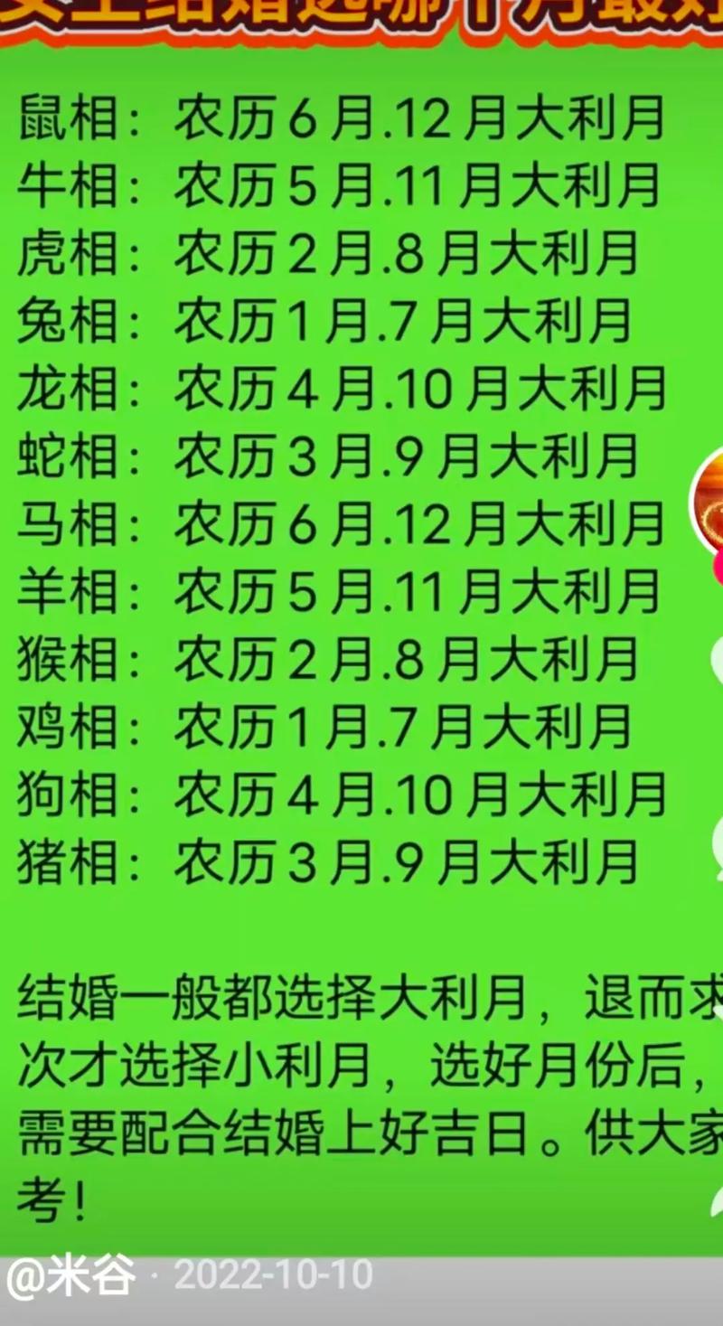 如果是属羊的新娘,大利月则是农历五月和十一月,小利月是农历四月和十月。