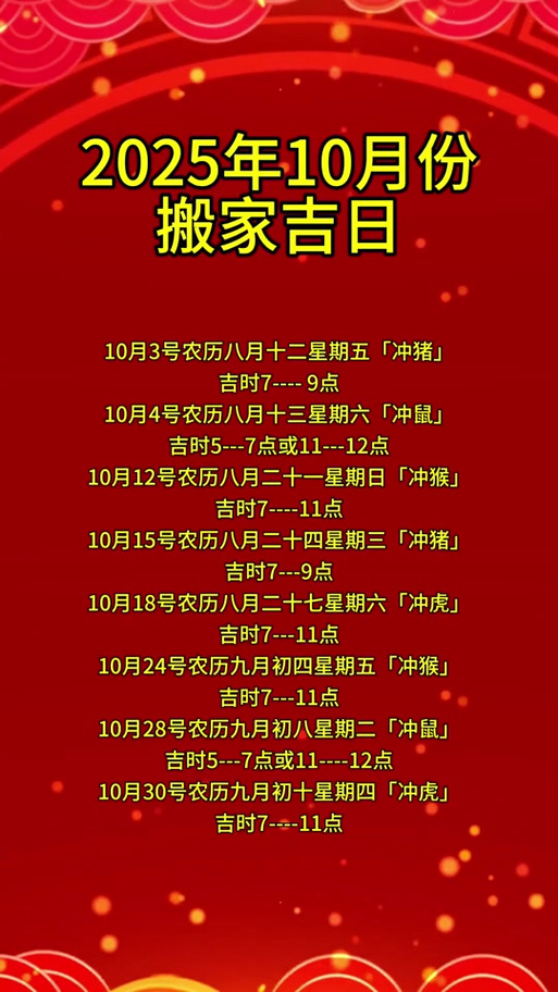 金秋十月,天高气爽,正值共和国华诞之长假、诸多家庭计划趁此良机,行乔迁之喜,搬入新居,开启生活新篇章、搬家非小事,择一黄道吉日,顺应天时,方能为新宅纳吉气,为家运注福源、所谓“吉地也要良辰催”,便是此理、以下为您详尽解析2026年10月期间,适宜搬家入宅的吉日与相关仪轨。
