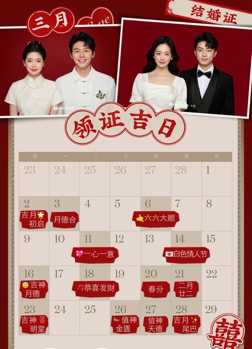 一九年三月领证的黄道吉日 领证日历图定制