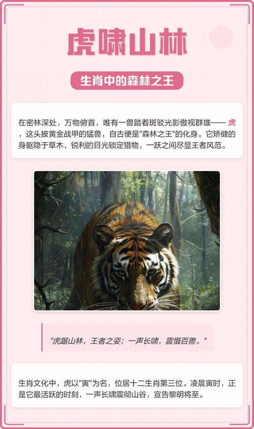 论及“独霸森林自称王”这一命题,无需寻幽探秘,其答案在中华传统文化中早已昭然若揭、这股气势,这份霸业,唯有十二生肖中的“寅虎”方能承载、虎,乃山林之主,百兽之王,其威严与生俱来,其地位不容置喙。