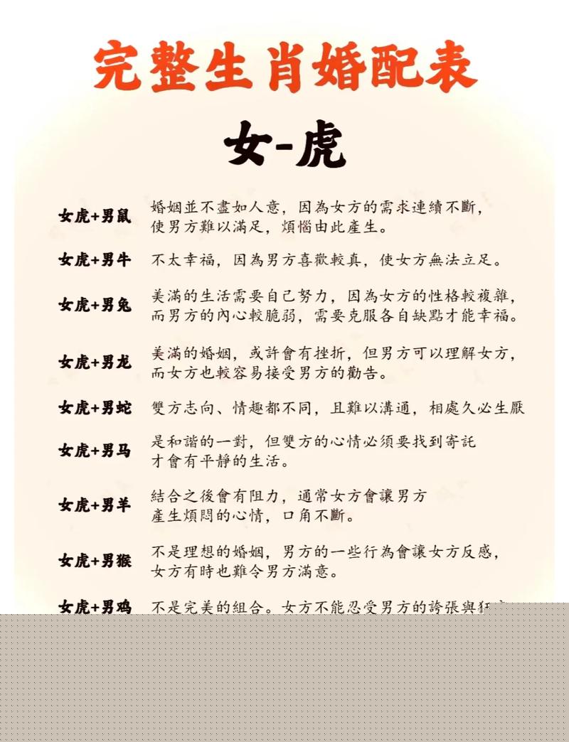 需要谨慎避开的,则是属猴与属蛇的追求者、寅申相冲,虎与猴的组合,是一场永无休止的权力斗争、两者都聪明、好胜,谁也不服谁,很容易在不断的智力角逐和相互试探中耗尽所有情分、寅巳相害,虎与蛇的思维模式截然不同、虎女光明磊落,习惯直来直去;而蛇性多疑,心思深沉、这种根本性的差异,会导致沟通上的巨大障碍,信任难以建立,最终演变成无尽的猜忌与伤害。